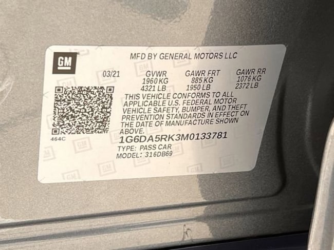 - VIN : 1G6DA5RK3M0133781