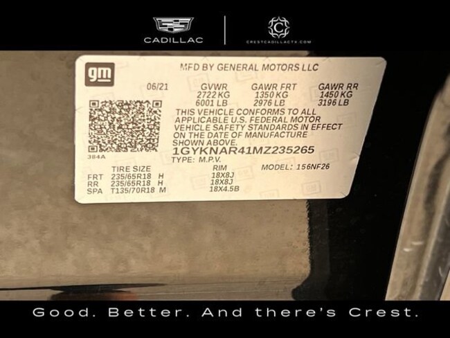 - VIN : 1GYKNAR41MZ235265