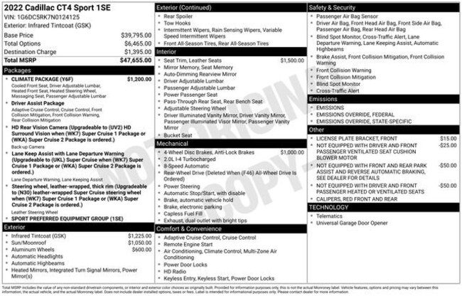 - Exterior Color : Infrared Tintcoat Interior Color : JET BLACK WITH JET BLACK ACCENTS, LEATHER SEATING