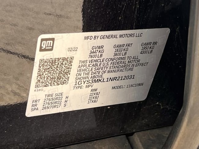 - VIN : 1GYS3MKL1NR212031