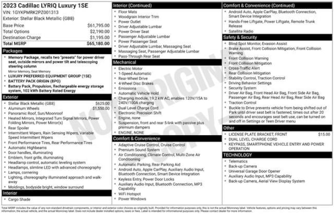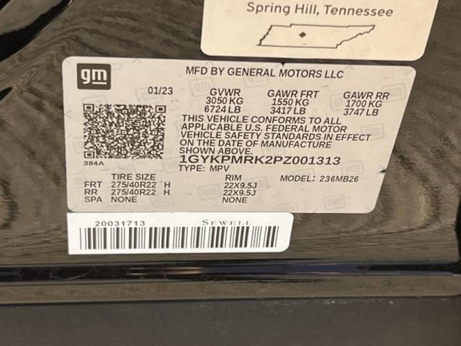 - VIN : 1GYKPMRK2PZ001313
