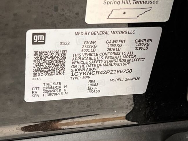 - VIN : 1GYKNCR42PZ166750