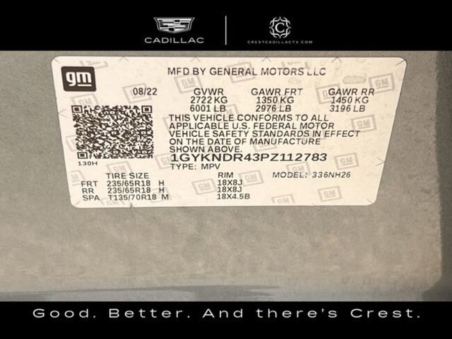 - VIN : 1GYKNDR43PZ112783