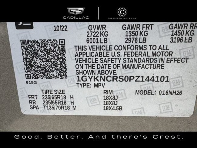 - VIN : 1GYKNCRS0PZ144101