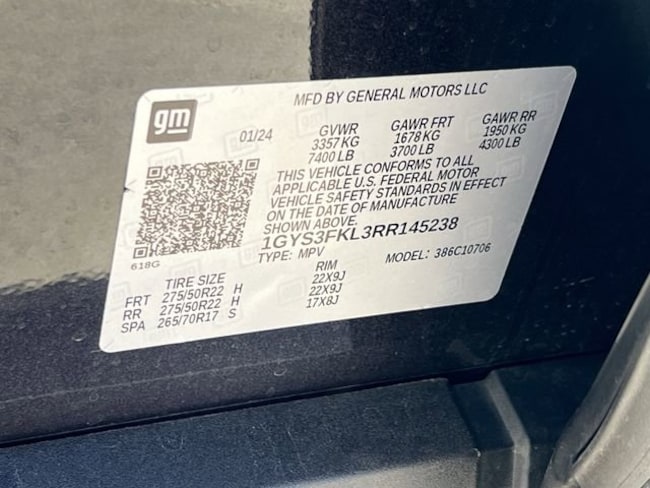 - VIN : 1GYS3FKL3RR145238