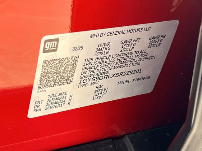 - VIN : 1GYS9GRLXSR229301