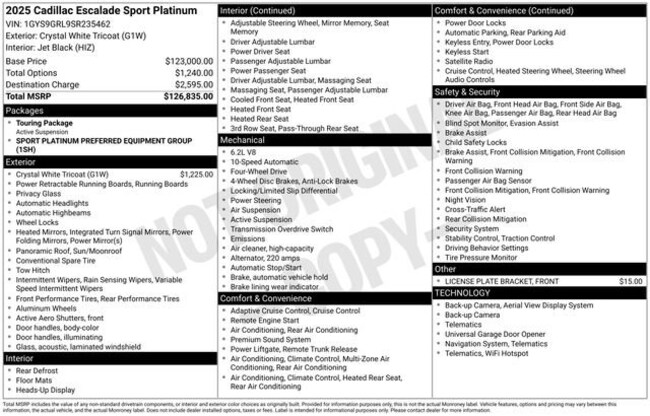 - VIN : 1GYS9GRL9SR235462