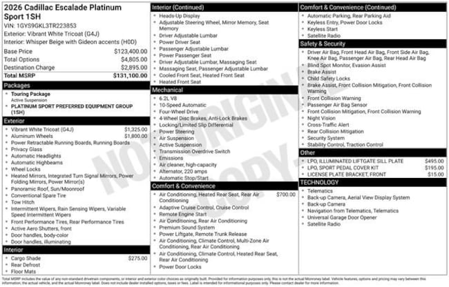 - Exterior Color : Vibrant White Tricoat Interior Color : WHISPER BEIGE WITH GIDEON ACCENTS, FULL SEMI-ANILI