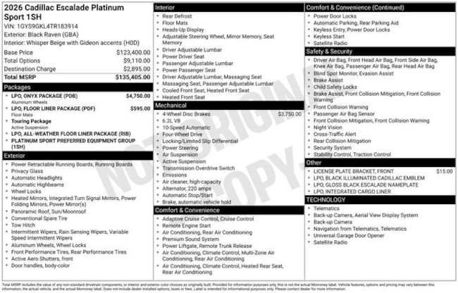- Exterior Color : Black Raven Interior Color : WHISPER BEIGE WITH GIDEON ACCENTS, FULL SEMI-ANILI