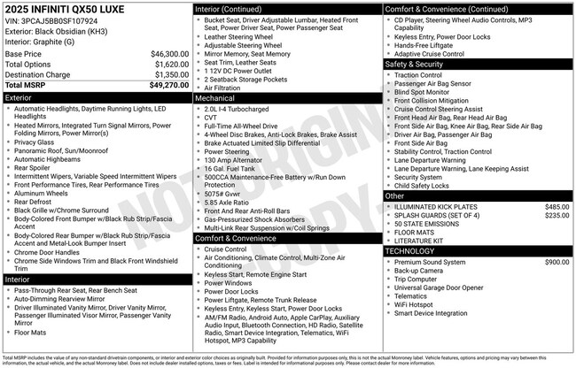 - Tracker system: INFINITI InTouch (1-year complimentary trial)