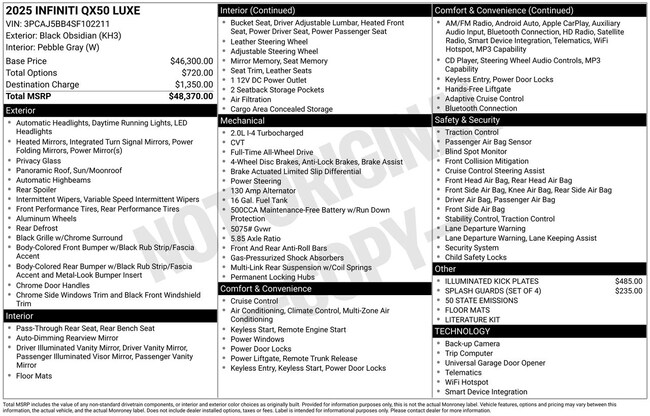 - Emergency communication system: INFINITI InTouch (1-year complimentary trial)