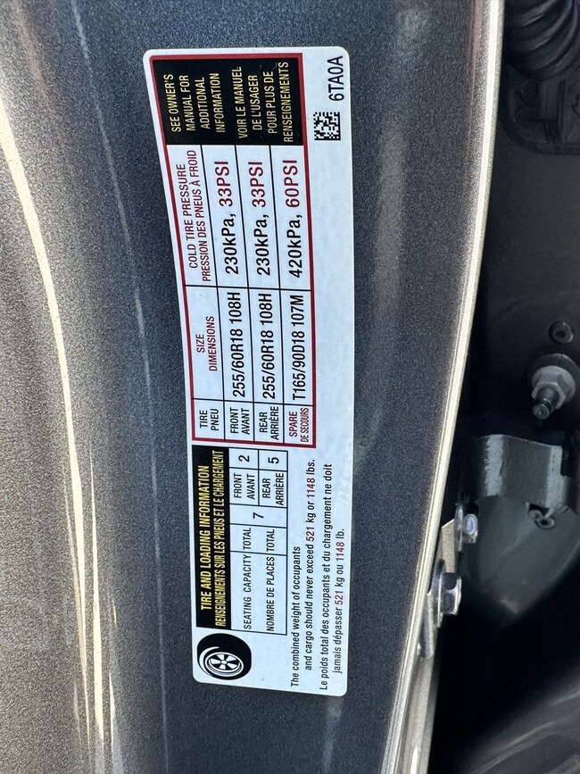 - Front tires: 255/60TR18.0