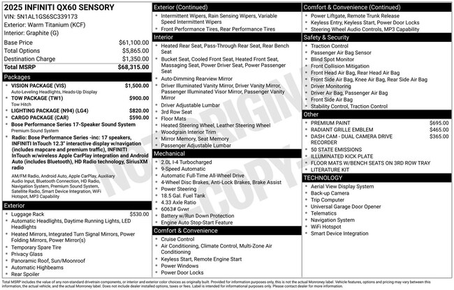 - Navigation system: INFINITI InTouch Navigation