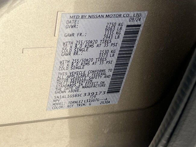 - VIN : 5N1AL1GS6SC339173