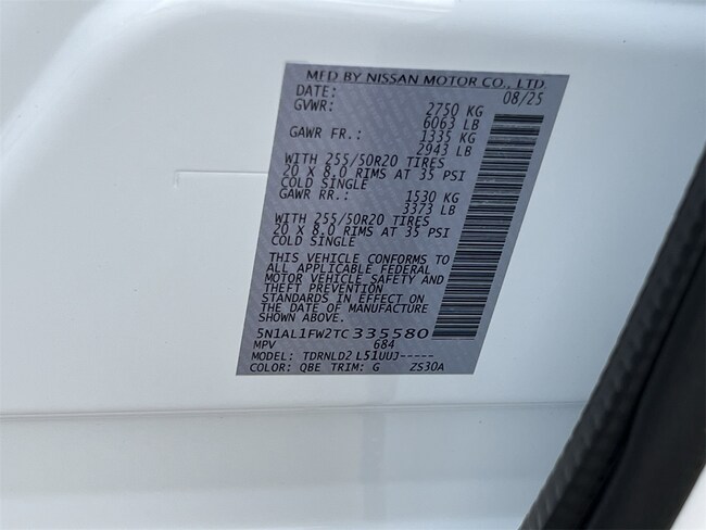 - VIN : 5N1AL1FW2TC335580