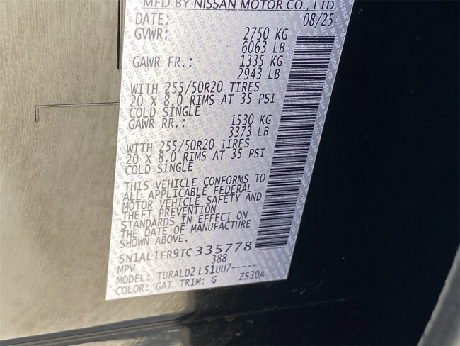 - VIN : 5N1AL1FR9TC335778