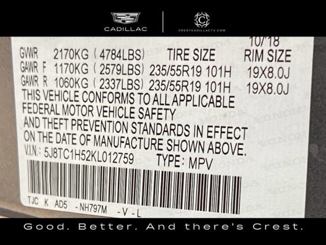 - VIN : 5J8TC1H52KL012759