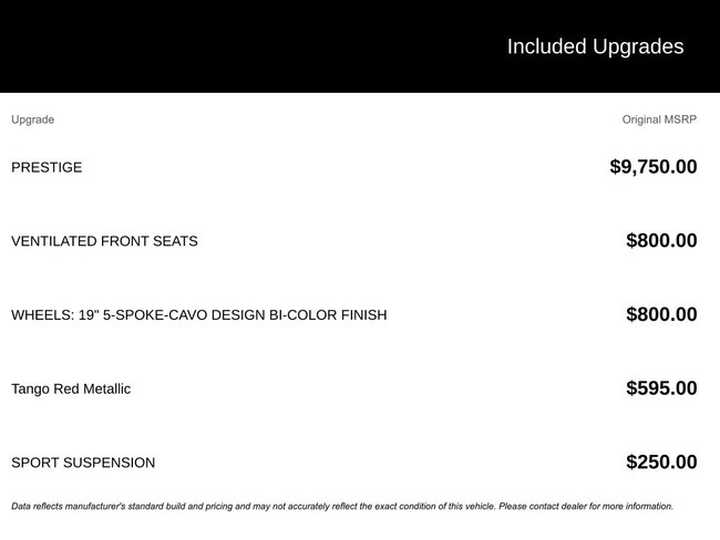 - Exterior Color : Tango Red Interior Color : BLACK