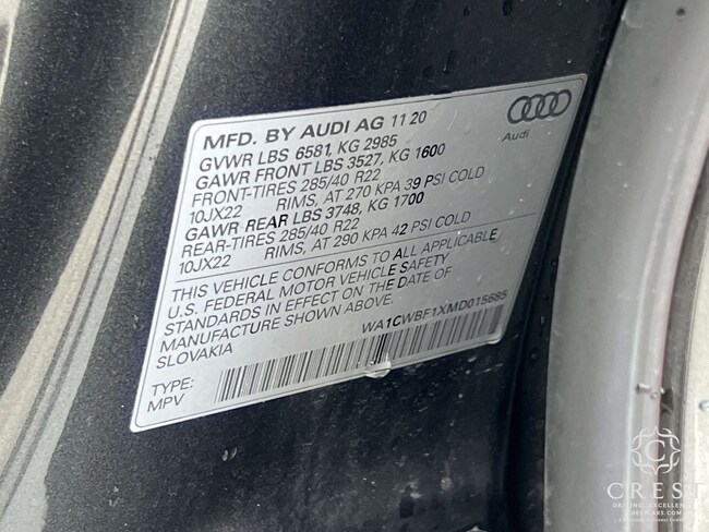 - VIN : WA1CWBF1XMD015685
