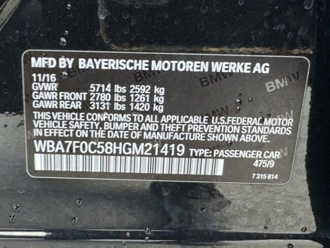 - VIN : WBA7F0C58HGM21419