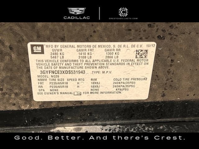 - VIN : 3GYFNCE3XDS531943
