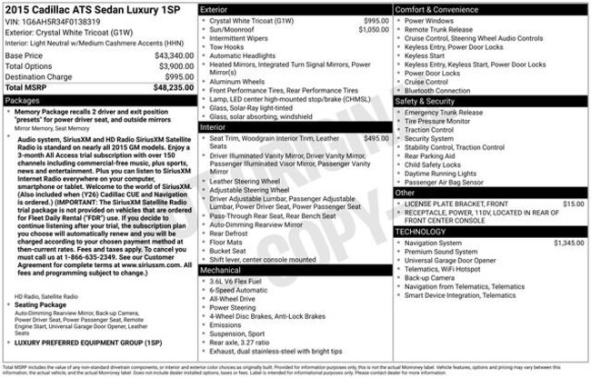 - VIN : 1G6AH5R34F0138319