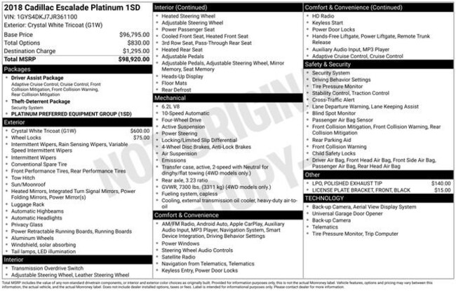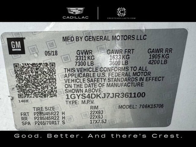 - VIN : 1GYS4DKJ7JR361100
