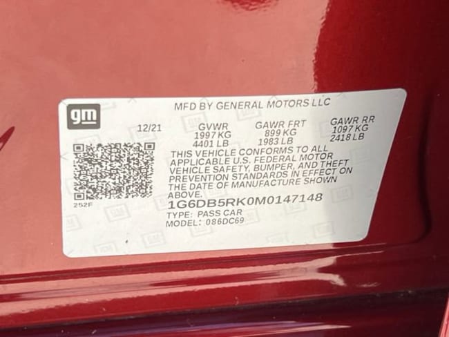 - VIN : 1G6DB5RK0M0147148