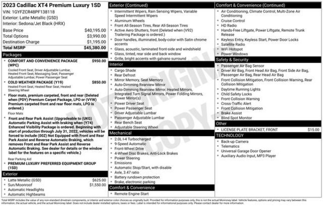 - Exterior Color : Latte Metallic Interior Color : SEDONA/JET BLACK, LEATHER SEATING SURFACES WITH MI