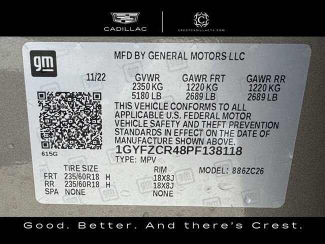 - VIN : 1GYFZCR48PF138118