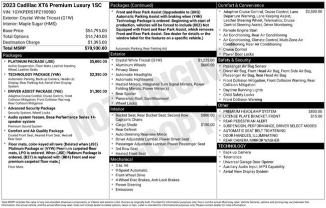 - Exterior Color : Crystal White Tricoat Interior Color : MAPLE SUGAR, SEMI-ANILINE LEATHER SEATS WITH CHEVR