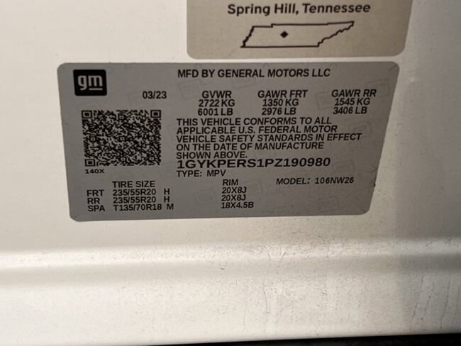- VIN : 1GYKPERS1PZ190980