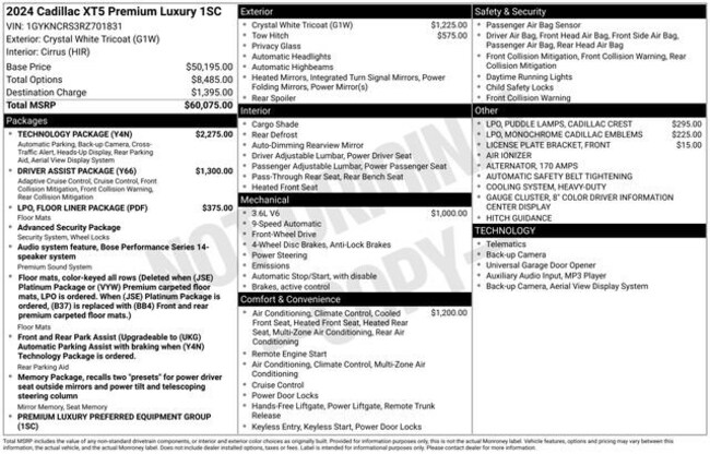 - Exterior Color : Crystal White Tricoat Interior Color : CIRRUS, LEATHER SEATING SURFACES WITH MINI-PERFORA