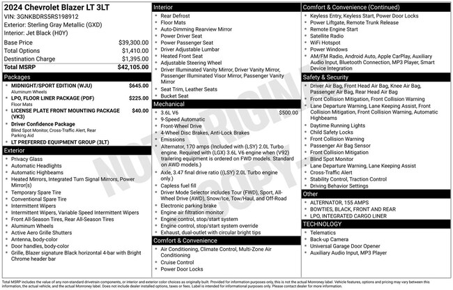 - Exterior Color : Sterling Metallic Interior Color : JET BLACK