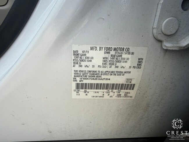 - VIN : 1FM5K7D82EGA27204