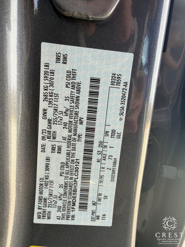 - VIN : 1FMDE5BH3PLC00121