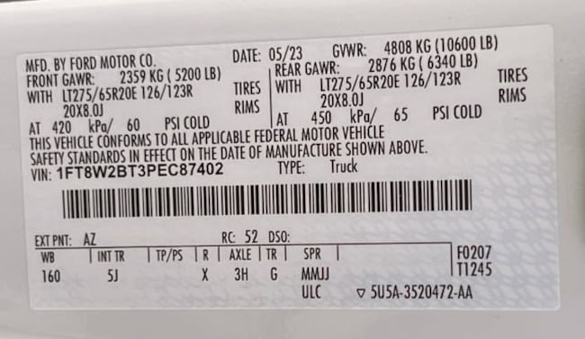 - VIN : 1FT8W2BT3PEC87402