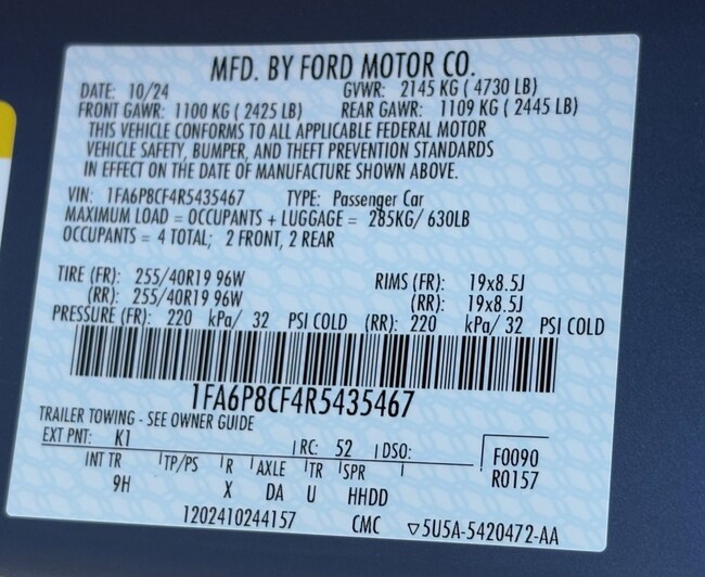 - VIN : 1FA6P8CF4R5435467