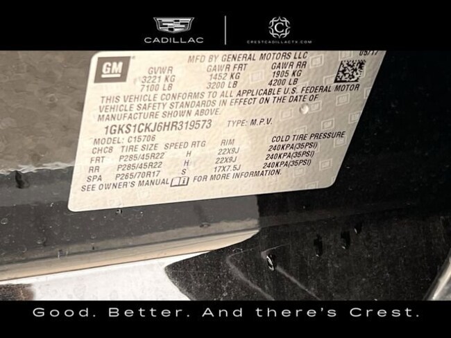 - VIN : 1GKS1CKJ6HR319573