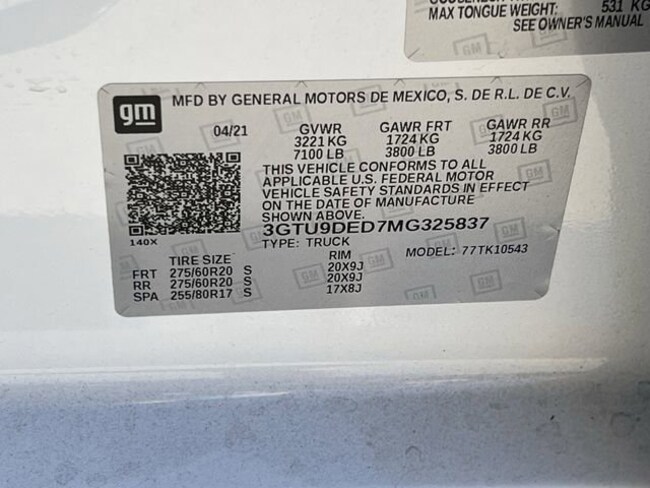 - VIN : 3GTU9DED7MG325837