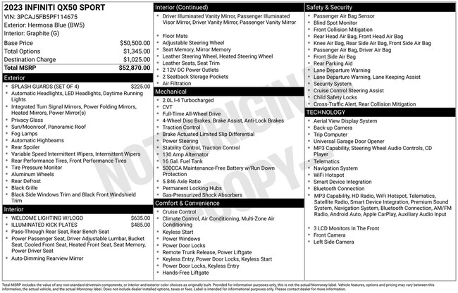 - Tracker system: INFINITI InTouch (1-year complimentary trial)