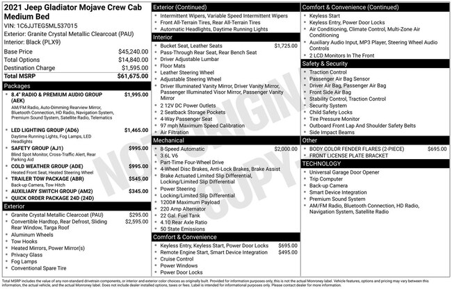 - VIN : 1C6JJTEG5ML537015