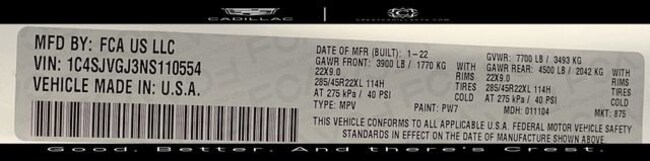 - VIN : 1C4SJVGJ3NS110554