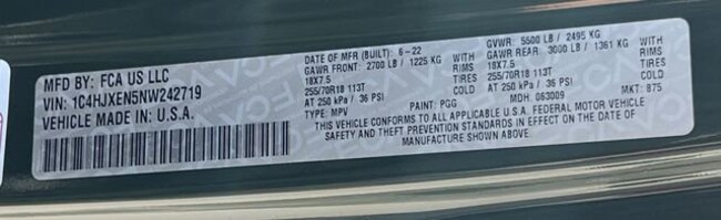 - VIN : 1C4HJXEN5NW242719