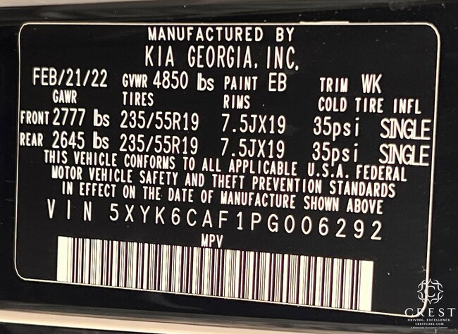 - VIN : 5XYK6CAF1PG006292