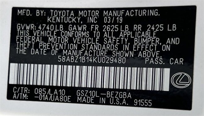 - VIN : 58ABZ1B14KU029480