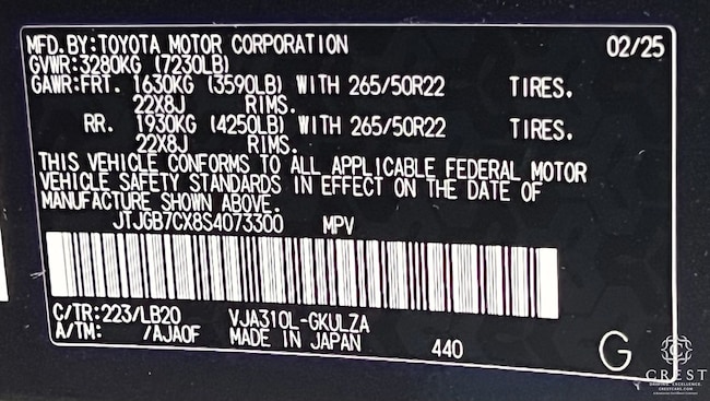 - VIN : JTJGB7CX8S4073300