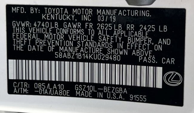 - VIN : 58ABZ1B14KU029480