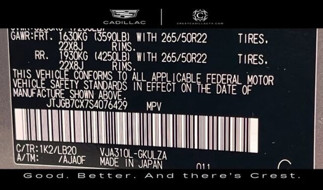 - VIN : JTJGB7CX7S4076429
