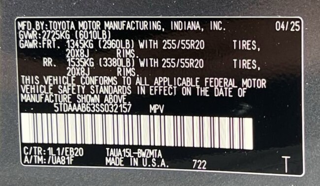 - VIN : 5TDAAAB63SS032157